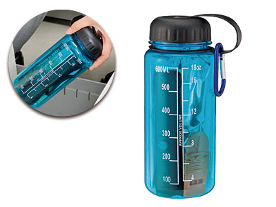 携帯しやすいウォーターボトルに、非常時に重宝するアイテムをセットしました。必要な品を追加封入して常備することもできます。