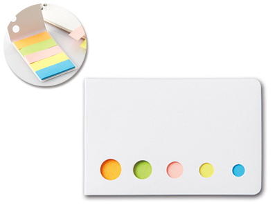 ミニフセンメモ5色を名刺サイズのカバーにセットしました。印刷可能部分が白地なので、名入れも映えます。