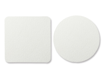 全面フルカラー印刷ができるソフトタイプのコースター。柔らかめのポリエステルを使用しているため、紙やラバーコースターと比べて吸水性があり、水滴をケアします。大量展開しやすい手頃な価格も魅力です。