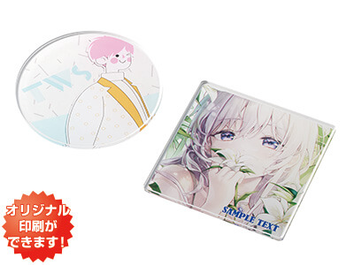 オリジナル型抜きで好きなカタチにできるアクリルコースター。水洗いができ、裏面には滑り止めも付いています。キャラクターやロゴに合ったフルカラー印刷とカットで、オリジナリティの高いグッズを制作できます。