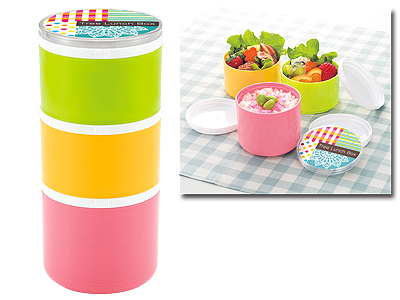 バッグの中に縦にすっきり収まる、携帯に便利なランチボックス。最上段のフタに、調味料やふりかけ、ピックなどを入れれます。おかずとサラダ・フルーツを分けて詰める事ができるので汁が混ざりません。■日本製