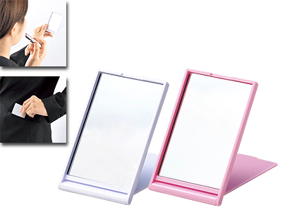 ポケットにも入る手のひらサイズのコンパクトな鏡。鞄などに常備しておけば、外出先でもさっと手早く身だしなみを確認できます。