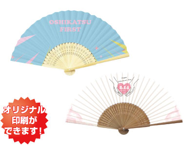夏を代表する定番ノベルティ。扇面をオリジナルで制作する事ができます。印刷面が広いため、アピールが高く注目度の高いノベルティが仕上がります。
