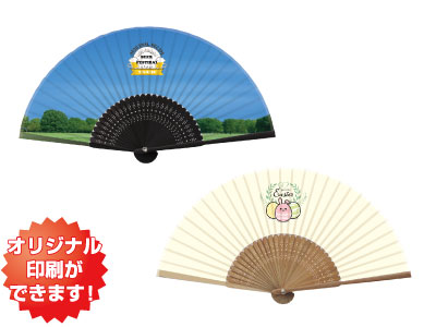 夏を代表する定番ノベルティ。扇子面をオリジナルで制作する事ができます。印刷面が広いため、アピールが高く注目度の高いノベルティが仕上がります。