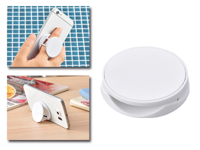 リング部分がスタンドとしても使える便利な2WAY仕様。展示会での配布に人気。