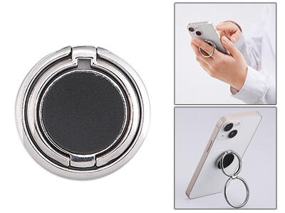 メタリックなデザインのスマホリング。手持ち・スタンド・壁掛けなど、様々な使い方ができ、モバイルライフを幅広くカバーします。男女問わず使いやすいシンプルなデザインもポイントです。