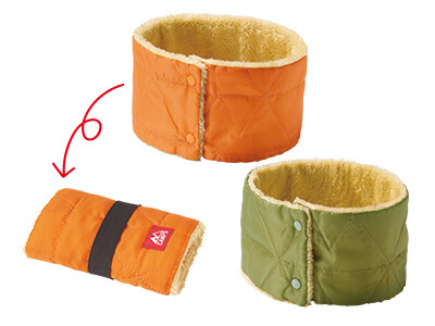 首に巻くだけで温かいアウトドアテイストのネックウォーマー。温かい缶飲料やペットボトルに巻いて、簡易ボトルカバーとしても使えます。