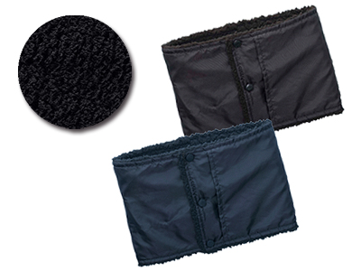 ボアとポリエステルのWフェイス仕様のネックウォーマー。ボタン式なので髪型やメイクを気にせず装着できます。
