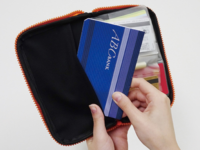 | 商品概要 | 手帳型に開くファスナーポーチ。 カード4枚と通帳2冊、印鑑2本が収納可能なPVCポケット付きの収納性抜群のバンクポーチ。 |
