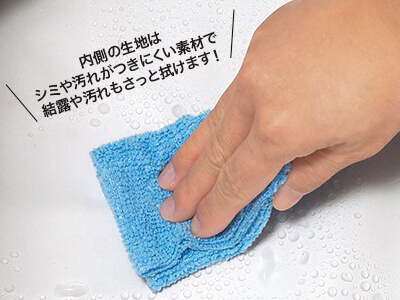 | 商品概要 | 雨具や自転車カバーに使用されている濡れに強いPEVA素材を内側部分に採用。汚れや結露をサッと拭けて衛生的に気持ちよく使えます。ファスナーは最後まで隙間なく閉まるこだわり仕様。お弁当+飲み物だけでなく、お財布やポーチもしっかり入る実用的なサイズなので、幅広いシーンに重宝します。500mlペットボトル6本が縦にも横にも入れられ、週末のピクニックにもおすすめです。 |