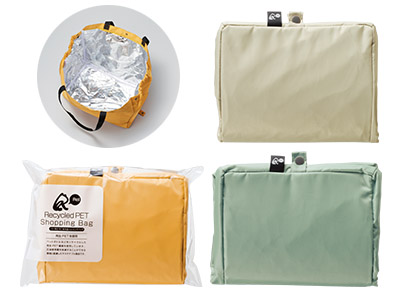 | 商品概要 | 再生PET繊維を100%使用した保冷温ショッピングバッグ。レジかごにすっぽり収まり、口部分のゴムがしっかりフィットするなど、使いやすさにも配慮されています。コンパクトに折りたためるので携帯に最適です。 |