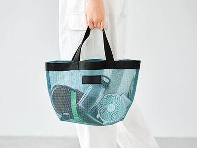 | 商品概要 | レジャーに最適なメッシュバッグ。メッシュ生地で作られているので外から中身が見え、持ち歩きやすい軽さもポイントです。スパバッグとしても活用できます。 |