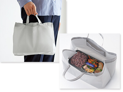 | 商品概要 | カードサイズの薄型ケースで気軽に携帯できるエコバッグ。幅の広いマチ付きで、コンビニのお弁当やお惣菜のテイクアウトなど、荷物を平らに持ち帰りたい時も安心です。外出先や旅行先などで急に荷物が増えた時や、仕事の資料を入れるなど、カバンに入れておけば様々な場面に役立ちます。 |