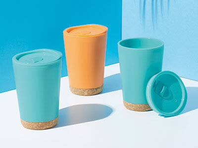 | 商品概要 | トロピカルなブルーとオレンジのタンブラー。樹脂製で軽く、お手入れも簡単です。滑りにくいコルク底を採用し、デスク上での使用も安心。二重構造なので熱いものは冷めにくく、冷たい飲み物は結露がしにくいので快適に使えます。鮮やかなカラーとコルクの組み合わせが夏らしさを感じさせる印象的なアイテム。印刷もできるので、コーヒーショップなど、飲食店の周年記念ノベルティにもおすすめです。 ■容量:260ml |
