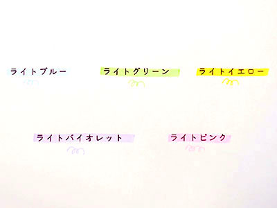| カラー | ライトブルー、ライトグリーン、ライトイエロー、ライトバイオレット、ライトピンク |