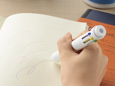 | 商品概要 | 1本になんと8色も搭載されたボールペン!ペンを持ち替えることなく書き分けができ、イラストなどを描く時も便利です。子供向けのノベルティにもおすすめで、習い事教室の入会プレゼントやイベントの景品などにもご利用ください。 ■ボール径:0.7mm |