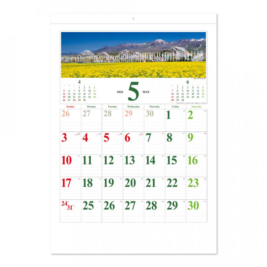 | 商品概要 | 日本の風景をワイドに捉えたパノラマ写真に、すっきり機能的なスケジュール欄を組み合わせた壁掛カレンダー。 ※印刷色は基本色からお選び下さい。 ■日本製 |