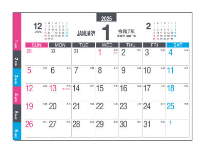 | 商品概要 | シンプルで見やすさを追求~3色の基本カラーでレイアウト。機能的で見やすく、メモ欄も充分にとってます。裏面には、使い勝手の良いスケジュール表を掲載。検索に便利なインデックスもついているのでカレンダーで日付を確認する際に便利です。 ※箔押しは金と銀からお選びください。 |