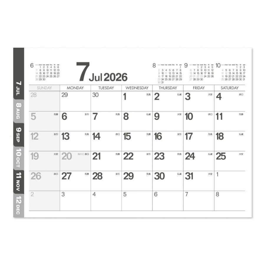 モノトーン6ウィークカレンダーの商品仕様