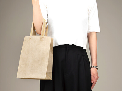 | 商品概要 | ペットボトルを原材料とした、環境にやさしくスタイリッシュなエコバッグ。ナチュラルな風合いは食品や雑貨などのギフトパッケージにもおすすめです。 |