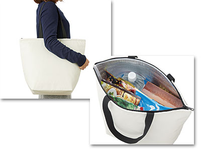 | 商品概要 | 毎日のお買い物にぴったりな大容量の保冷バッグ。 内側がアルミ蒸着加工なので、しっかり中の温度をキープし、さらにファスナー開閉なので、安心してお使い頂けます。 アウトドアシーンや毎日のお買い物に最適です。 ■容量:約19L ■取り扱い説明書付き |