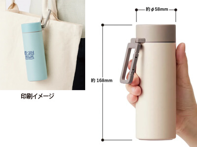 | 商品概要 | 持ち運びに便利なカラビナフック付きのサーモボトル。手に引っ掛けて持ち歩いたり、リュックに取り付けたりなど使い方は様々。保冷保温機能付きなので長時間飲み頃温度をキープできます。 使い捨て飲料容器の削減につながるアイテムなので、SDGs関連のイベントにもおすすめです。 ■容量:250ml ■取扱説明書付、食品衛生検査済 ※チャコールブラック、スモークピンク、スモークブルー、オフホワイトは好評につき完売しました。 |