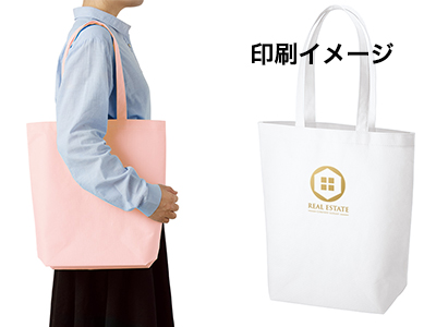 | 商品概要 | 再生不織布を使用したトートバッグ。肩掛けができるのでお買い物バッグに最適です。エコマークが付いており、SDGs関連のアイテムとしてもおすすめ。展示会やオープンキャンパスなどでの資料配布、アパレルのショッパーにもご利用ください。 ■容量:約10L |