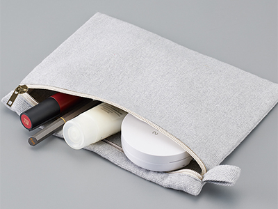 | 商品概要 | 再生素材を使用した普段使いしやすいフラットタイプのポーチ。大きめの手鏡やハンドクリーム、細々としたコスメグッズなど、化粧ポーチにぴったりの商品です。好感度の高いナチュラルなカラーリングも魅力です。 |