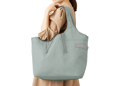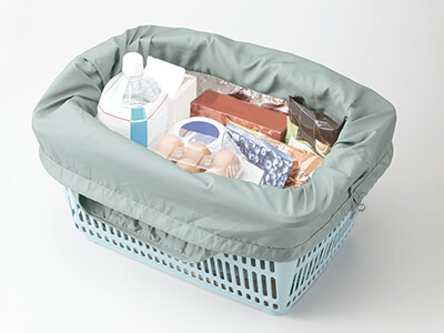 | 商品概要 | レジカゴに取り付けられる大容量のマルシェバッグ。巾着タイプで大きく開けられるので物の出し入れがしやすく、内側にはペットボトルや牛乳パックなどを固定できるゴムバンドも付いています。肩の負担を軽減してくれるクッション入りの持ち手で、使い勝手も抜群!バッグ外側には、車の荷下ろしにも便利なベルト付きで、様々なシーンで大活躍してくれます。 ■容量:約30L ■2020年度グッドデザイン賞受賞 |