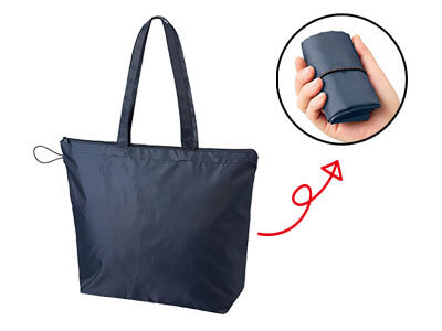 | 商品概要 | ファスナー付きで安心のポケッタブルトートバッグ。独自の厚さでPUコーティングを施しているため、しなやかで耐久性のある生地に仕上がっています。たくさんお買い物をしたときや、荷物が多いときにもファスナーを閉めれば中身を見られることがなく、荷物が飛び出る心配もないため安心して使用することができます。使用しない時は小さくまとめられ、旅行などにもおすすめです。 ■容量:約9L |