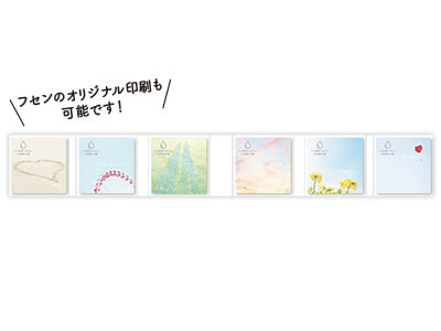 | 商品概要 | コンパクトなブック型のミニフセン。中面に6つの付箋が付いており、それぞれデザインを変えることも可能です。表紙、裏表紙にも印刷ができるので、オリジナリティの高いノベルティを製作できます。 ■日本製 |