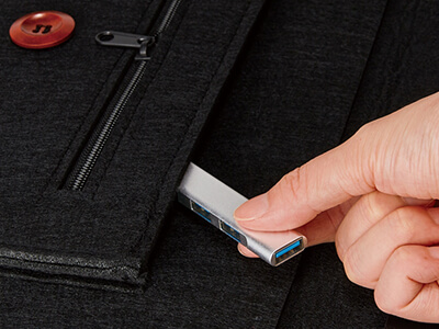 | 商品概要 | ポート不足を解消できるスマートなUSBハブ。名入れが見える窓あきタイプのパッケージ入りです。最大4つの同時接続に対応しており(USB3.0×1箇所、USB2.0×3箇所)、USB3.0対応で高速データ転送も可能。携帯しやすいポケットサイズも便利です。 ※データ転送速度(理論値):5Gbps(USB3.0)/480Mbps(USB2.0) |